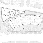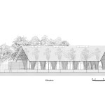 The service area, located adjacent to the bamboo building, is compactly designed so that it sits below bamboo building’s eaves yet still meets the minimum functional requirements in plan.
