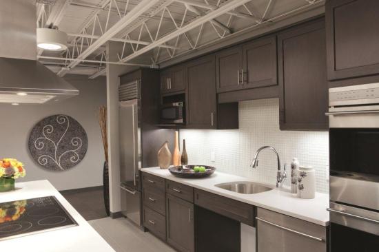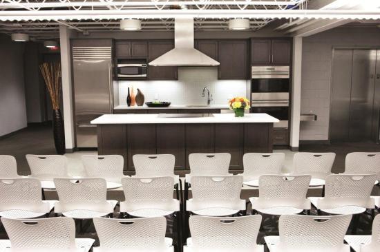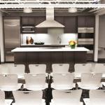 The clients desired to have wide-open workspace area, bright-flooded with as much natural light as possible. The architect wanted to give the center of the office a New York loft feel, with pendant lighting and no ceiling, producing a sleek and contemporary look with open office areas, dark flooring, light walls and warmed up with touches of wood. The design makes collaboration natural and easy, also providing a lobby and reception area that’s both inviting and more oriented to receiving visitors. The building now boasts a dedicated full-service photography studio, complete with a dressing room and private storage area, and a working kitchen for cooking demonstrations.