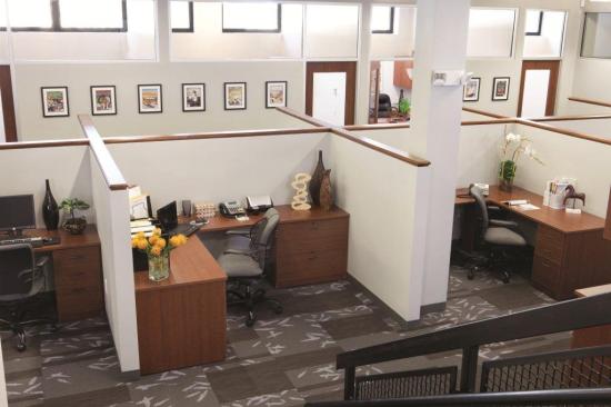 From electrical to heating & air conditioning to plumbing, they used environmentally friendly design, making sure to include as many energy efficient solutions as possible. For example we incorporated a high level of control in the mechanical systems, such as the HVAC system, lighting motion sensors so the light automatically shut off when offices are unoccupied, and water-efficient plumbing for reduces water use. Other green features include Low-VOC paints, carpeting made from recycled materials and re-purposed California Closets furniture and cabinetry.