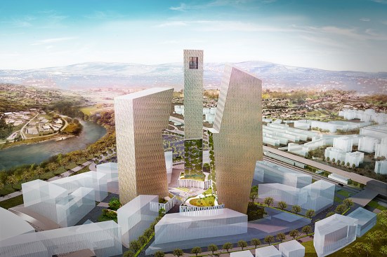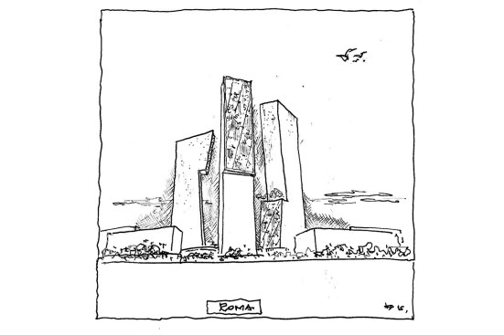 The design for the business park features three towers in conversation with one another. They stand in close volumetric relationship—seemingly cut from one stone block. The volumes fit into each other like antique building blocks creating a composition of elements that are both connected and singular. The towers are arranged in a triangular formation, with a 3,000 sq-meter colonnaded public piazza, landscaped with a verdant garden and reflecting pools. The towers will be linked to the stadium by means of a retail boulevard that runs from the Tor di Valle metro station to the AS Roma stadium.