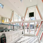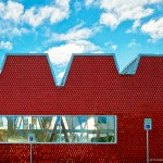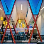 Consciously referencing the archetypal 50's-era drive-in diners, Chioco Design developed an iconographic structural 'X' & 'Y' form traversing the length of the block facing South Congress Ave. These bright red columns support a crenellated roof profile extruded through the entire building, seamlessly connecting inside to out, and allowing for the addition of numerous north-facing skylights which provide an abundance of consistent natural light. Steel planters and tree wells extend out to the sidewalk and street to act as an inviting and accessible area adjacent to the vibrant energy of South Congress Ave.