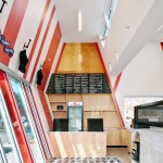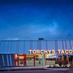 Drawing from a carefully developed and dynamic material palette from previous Torchy's locations Chioco Design implemented the now-symbolic red road reflectors across the western facade emphasizing the eclectic character of the neighborhood.