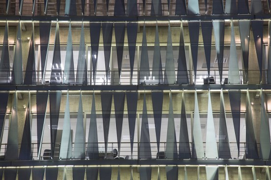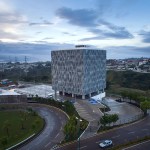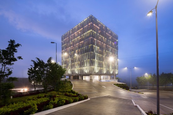 skin of the building becomes transparent due to the tiny perforations of the