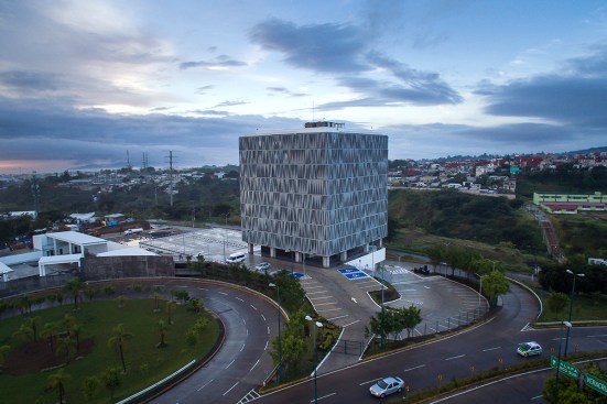 cube has a multilayered facade, with an inner full-height windows layer and a