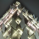 second layer designed with triangular panels made of multi-perforated metal