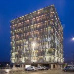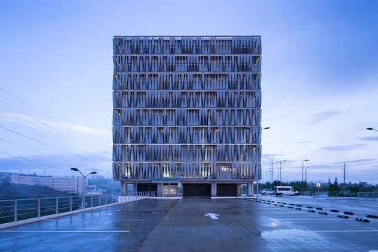 outer facade layer gives the office building a distinctive character. From a