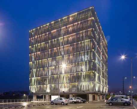 metal sheet, transforming the building into an urban night lamp.