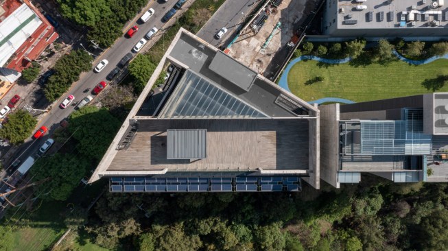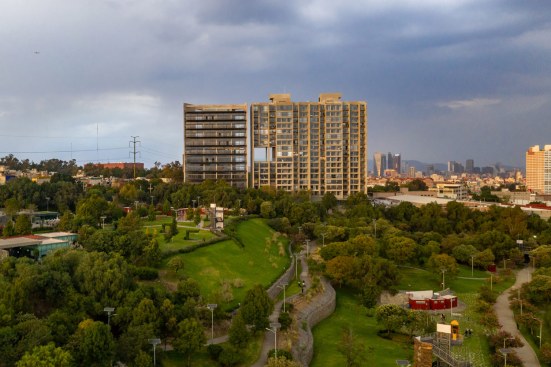 At the edge of Mexico City's west area, a lot —on the brink of a very well located light industrial area— is recycled into a mixed used building formed by 2 housing towers and one for offices, with a retail space on the ground floor. Three concrete towers joined on the amenities base through a grand corridor that maximizes the views towards the garden (which is the parking´s roof top) and a 7 hectares park.