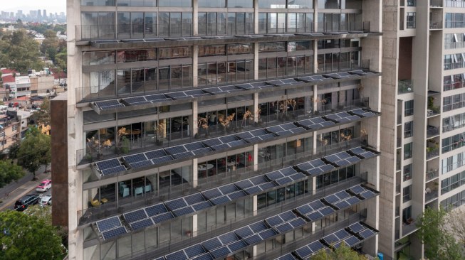 Torres Bioparque / Offices Building: is a project developed in 16 levels that include beside the office spaces, commercial premises, roof garden and a grand exterior plaza that works as motor lobby and access for the two towers. The sun cutters with 320 solar panels integrated into the structure to achieve the highest energetic efficiency stand out.