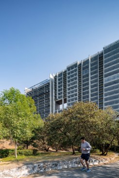 The project was conceptualized as an apparent concrete exostructure that exploits the views towards the park and organizes its interiors with different uses to receive a community that will keep the complex alive all the time. The high sustainability standards used in all the spaces and services stand out, such as the incorporation of the first photovoltaic façade in the offices tower.