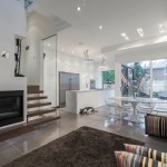 The evolution of design was a simple geometrical obsession with squares and grids. Starting with ten 10’ x 10’ squares carefully assembled on the linear site, logical modules were then dedicated to essential rooms in the house. The squares not only define the interior rooms, but they also formulate the boundaries of the backyard patio, the landscape, the parking area and the covered entry to the house. The totem sits on the central square dividing the living/dining area from the kitchen on the ground floor and the two bedrooms on the second floor.