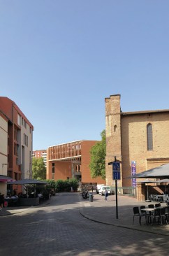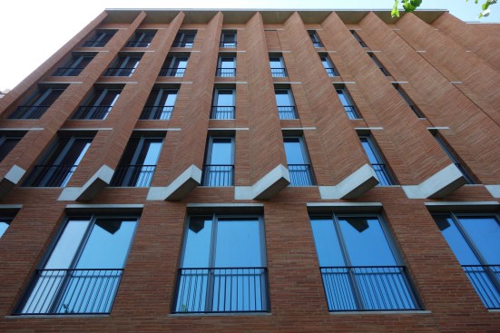 The new TSE building draws in the social space of St.Pierre des Cuisines and closes the vista from that Square. The brick façade of St.Pierre des Cuisine Church combines with the two beautiful mature plane trees, which stand close by, to form the immediate eastern enclosure of this new city space.
