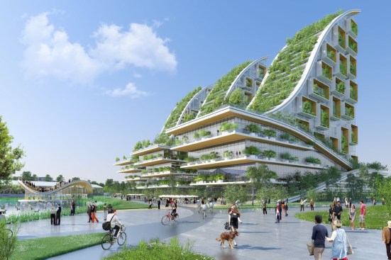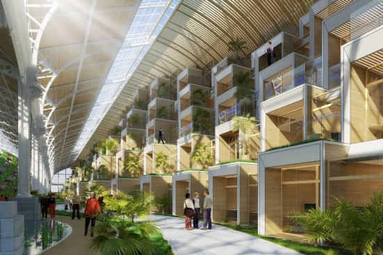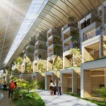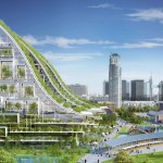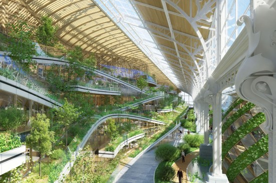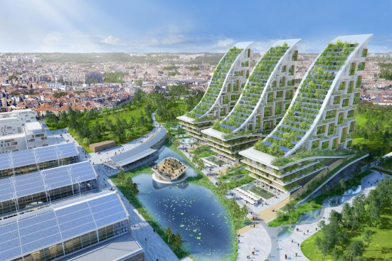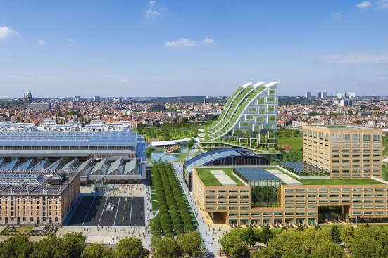 The project presented herein focuses on the "metamorphosis" of the Gare Maritime (Marine Terminal) into 50,000 square meters (c. 538,000 square feet) of mixed-use space composed of professional activities (offices, workshops, etc.), retail activites (markets, showrooms, shops, fablabs, etc.) and public amenities. Across from the pediment of the Gare Maritime, the project also includes the eco-design of three residential "vertical forests" totalling 85,000 square meters (c. 915,000 square feet), as well as the creation of a large pond bordered by a natural and biological pool which links the Tour & Taxis park to the Brussels canal.