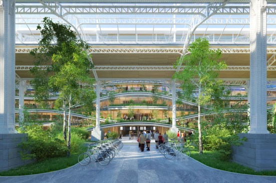 This redevelopment is combined with the creation of a bridge for public, non-motorized and shared transportation that will link the Rue Picard on the south side of the site to the Gare du Nord train station.