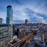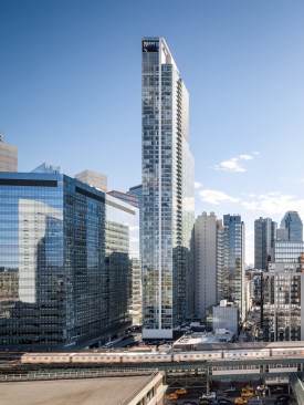 The tower’s mass is broken into lighter volumes to create a slender volumetric expression. A combination of spandrel glass and fritted glass panels in a variety of different colors and patterns, are layered to create compositions that move up the building in shifting, dynamic movements. The observation deck on the 60th floor of the building features eastern views of the stunning Manhattan skyline.