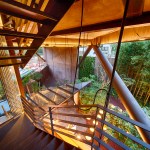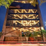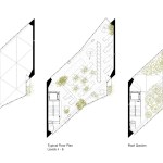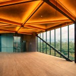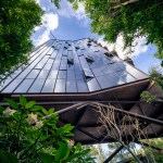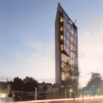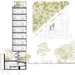 A green view with a green mind that breathes the living aspects of its context –from its own flowering roots to a wild roof’s foliage. The temperature? To please –with unconditioned ease, and sun to match it: A daylight prism aligned for self-sufficiency. And then, at night, a grid of lit inner geometries –that turn the silhouette-spire into an urban flame. It is a place to work oneself –fully, creatively (and all around as well).