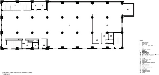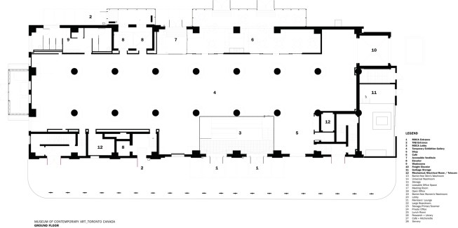 As a new creative engine in the heart of Toronto’s old manufacturing district, MOCA stands at the conjunction of art and culture, performance and community-building. This exciting new institution offers a ground-floor public meeting hall, café and temporary exhibit space, with four floors above grade occupied by exhibition halls, workshops and maker spaces, administrative offices and public/staff libraries. The top five stories of the Tower Automotive Building will be occupied by graphic design, software and other creative practices.