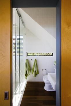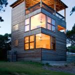 This simple sleeping volume offers great views and warm veneer-lined interiors. The architects clad the building in extremely durable massaranduba tropical wood.
