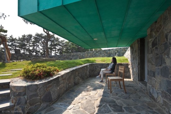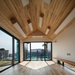 The client wanted to build a very small house compared to its site size. Therefore, it was difficult to use actively the vast outdoor space while the architect believed that a true architectural manifestation comes out of communication with the outside. At least, he wanted to give every each room a separated outdoor space. This architect’s wish and the client’s wish to have south facing living room and master bedroom filled with the sunlight are unified together and resulted in a unique x shaped building arrangement. The architect got attracted by in-between spaces created by the x shaped configuration rather than the shape itself. He placed living room, master bedroom, kitchen and small rooms one by one along the flow of house so that the in-between spaces formed among the rooms can work as an independent outdoor space for each space. Especially the in-between space of living room and master bedroom are oriented to the south in order to draw abundant sunlight into the space. The terrace in front of the living room, which is inspired by Numaru; a Korean traditional loft floor structure, is constructed above the ground over the slope flows into the garden, and the space under the terrace structure is designed as a resting space. Tower House will deliver a very new living environment filled with diverse features to the client.