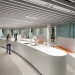 The room climate concept for the offices involves thermal mass activation, heating/cooling sails, external solar screening, triple-glazing, and mechanical background ventilation with heat recovery, which are all part of the energy-saving concept. In addition, users have the benefit of openable ventilation panels which they can use to manually control the room climate by letting in fresh air. In the public areas of the citizens’ service center, restaurant, and conference area, the more complex air-conditioning requirements are met with heating and cooling ceiling systems and a partial air-conditioning system with highly efficient heat recovery.