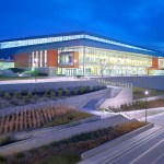 Towson University is actively transforming from a local commuter school to a four-year college with regional stature and increased enrollment. This change demands comprehensive program improvements in athletic facilities for its Division I teams. To respond to this growth and transformation, Towson engaged Sasaki to design the SECU Arena. The basketball arena is home to the Division I Towson Tigers who play in the Colonial Athletic Association. The arena is designed to provide spectacular views of the basketball court and includes 5,200 spectator seats, four private club suites, 340 premium club level seats that round the top of the lower seating bowl, and an additional 104 courtside seats. The VIP accommodations include a separate entrance, large suites, and a large, flexible hospitality room at the upper level. The entrance side of the main level surrounding concourse was made significantly wider than required to accommodate various functions and uses.