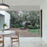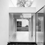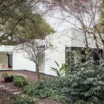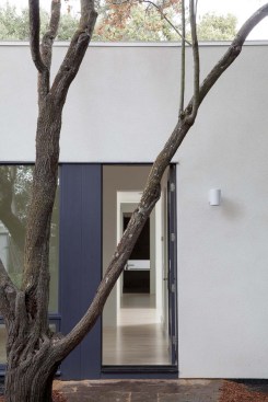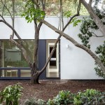 The minimalist palette extends to every detail, including the custom aluminum windows with frameless edges. Mature American elm and plum trees were preserved on the site, and the new addition engages the garden with windows and glass doors that are positioned to control views into the landscape. “It has a great relationship between inside and outside which was executed in a playful and abstract way,” Kudo-King said.