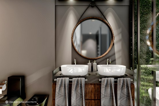 DNA makes an emphasis on sustainability respecting ecosystem and biodiversity, contributing to the usage of natural materials. The first floor is decorated with trees and bushes and the walls of the hotel are covered by vertical vegetation which reminds a greenhouse. DNA achieves a fusion between Nature & Architecture and creates a place which helps its guests to achieve a balance between mind-body-soul providing a true escape from everyday life and allowing maximum disconnection.