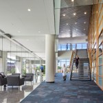 The School of Medicine embodies and facilitates an innovative approach to medical education. Located at the crossroads of the Medical Campus, this facility houses a lecture hall, meeting room, classrooms, student activity areas, and state-of-the-art simulation labs. Consolidating these elements creates connections between them, increasing the encounters that encourage collaboration between different disciplines, faculty, and students. Both form and enclosure respectfully refer to campus surroundings while embracing cutting-edge, sustainable technologies. The new facility creates an identity for the school by formalizing a vibrant and progressive image appropriate for its paradigm-shifting program.