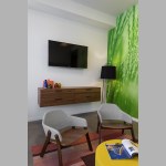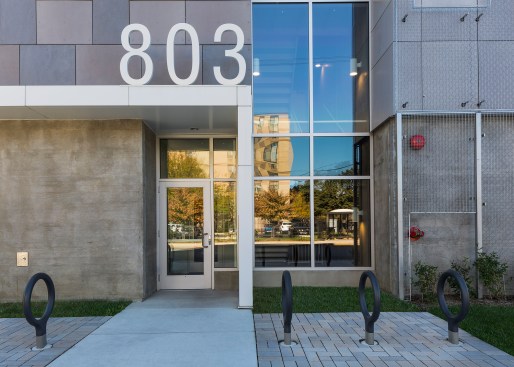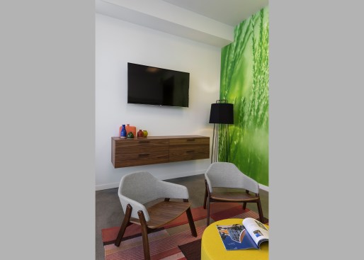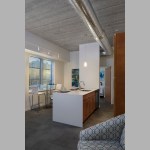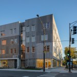 A bold vertical swath of green wall will mark the entrance to this four-story, mixed-use structure in Chicago’s Woodlawn neighborhood. 24 two-bedroom market-rate apartments sit above 7,000 square feet of commercial space planned to help revitalize the Cottage Grove Avenue corridor. Above the first floor’s storefront glazing is a rainscreen-clad façade inspired by the traditional masonry buildings typical of the area. The exterior panels are articulated in a random pattern with subtly varied colors that create a dynamic rhythm with the shifting alignments of window openings. The result is a frankly efficient building whose mass and materials harmonize with its surroundings while its details offer a brightly contemporary look for its occupants.