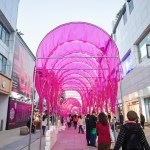 The Accordion Arcade is divided into four sections, together forming Suzhou Design Week’s acronym SUDW when so configured and viewed from above. Thus, activating the streetscape of Guanqian Street while also highlighting this important cultural event for the city.