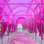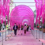 The Tricolor Trilogy series is a series of pavilions created to activate under-utilized urban public spaces. Originally designed for Suzhou International Design Week, the designs were created to respond to the local urban conditions in the historic Guanqian commercial district. The trio of pavilions titled Accordion Arcade, Blue Sky Blues and Orbital Oasis were each created to address a site-specific situation ranging from a lack of shelter to a lack of seating and resting places. At the same time the pavilions were designed to serve as a flexible solution and the Accordion Arcade was subsequently presented at the Go! Design Community Festival in Shekou, Shenzhen.