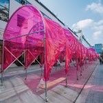 The Accordion Arcade is an evolution of the People’s Canopy, an earlier design by People’s Architecture Office. It is architecture for events and architecture as event. They are retractable arcades that can be wheeled around a city and expanded over the length of entire streets, linking disconnected public space, and creating space for shelter and events.