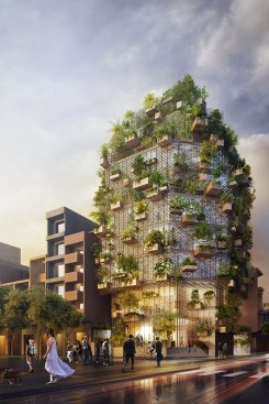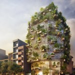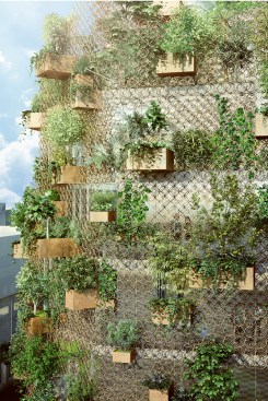 The project aims to propose a new typology for an office building in a tropical urban environment. Despite a hot and moist climate, the majority of office buildings in Vietnam are built using glass façades more appropriate for milder climate regions. The commonly used single-layered glass facade has three major disadvantages in Vietnamese cities: an enormous amount of heat gain increases energy consumption due to the need for air conditioning; flat glass details have a great risk of rainwater leakage; a thin glass partition offers poor acoustic resistance against noise pollution from the street. On the other hand, double glazed façades are rarely seen in Vietnamese cities partly due to a lack of need for high thermal insulation in winter. In this context, a “tropical double skin” is an appropriate alternative solution for building façade design. An inner layer of a glass and an outer layer of greenery define this system. Greenery, which is easy to maintain in a tropical environment, moderates heat gain and water penetration as well as reducing noise through the façade.