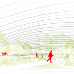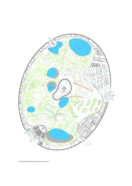 Tropicalia was designed by Coldefy & Associates as a harmonious haven seamlessly integrated into the local environment, with an original innovation: the project is self-sufficient—producing energy through the use of a double dome creating a room in which the air heated through a greenhouse effect. The absence of bearing posts and the presence of a peripheral green wall enhance this cocoon-like atmosphere. The architecture blends in with the scenery: the building is set partially in the ground, thus partially lowering its height and impact. Tropicalia appears to rise like a small hill within the landscape.