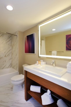 As part of a multi-million renovation, Tropicana Atlantic City teamed with SOSH Architects to transform their Havana Tower Guestrooms. The design team took cues from woven textiles in neutral hues, lively accent colors, and bold patterns inspired by the Cuban marketplace. To match the North Tower’s upgrades completed the year before, the Havana Tower’s 500 rooms were designed to invite guests in with sophisticated new décor, contemporary artwork, modern furnishings, and spa-inspired bathrooms. The design team embraced the exceptional natural light and large windows to allow the various ocean and bay views to fill the rooms. The result is a relaxing and modern getaway for any guest to experience and enjoy.