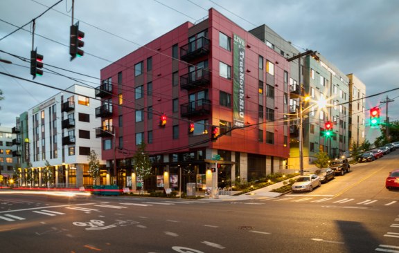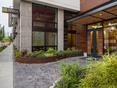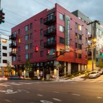 At the ground level, the building includes large retail and restaurant spaces at the corner of Aloha, as well as several live/work units along Dexter Avenue.