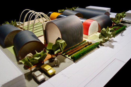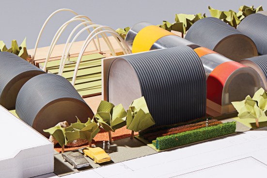 When it comes to rebuilding Detroit, there’s no lack of energy and ideas, both from locals and from designers around the country. The difficulty is making big-ticket redevelopment projects work in a city where grassroots creativity doesn’t often come hand-in-hand with deep pockets. And while the focus on creative solutions is certainly a plus, there’s also no guarantee that the outsiders coming to town to help lead the push today will still be around tomorrow. Los Angeles–based EC3 understands those complexities, which is why its design for True North—a 7,000-square-foot mixed-use project 2.5 miles away from downtown—is centered around an easily constructable and decidedly cost-friendly vernacular: the Quonset hut. Churned out by the hundreds of thousands during World War II, the prefabricated Quonset hut is a half-tube in cross-section, made from a steel frame and steel or wood siding. In True North, these old-school structures get a bit of a modern update: Radiant heating in the concrete floors warm the huts, which provide nine live-work spaces for artists, entrepreneurs, and community activists. The ends of huts are made from custom-steel framing around polycarbonate panels to improve thermal values. Along with the huts, the site includes gardens, a community pavilion, and parking for eight cars. Three pathways connect the site to the neighborhood, inviting the broader community to engage with the space. And most importantly, by relying on low-cost prefabrication, the project will actually be realized: EC3 hopes to have the project completed by spring 2017 at a cost of just $850,000.