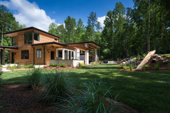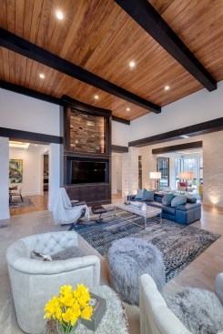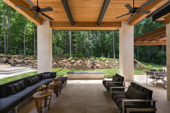 Nestled in a wooded lot nine miles south of Charlotte, North Carolina, stands the True Residence—a home perfectly situated in its surroundings, and the essence of Hill Country home design. It’s sprawling. It’s contemporary. And it’s comfortably pleasing. Warmed, inside and out, by the distinctive beauty of all-natural and locally grown cypress. “This was the second home my client built from the ground up,” said Vicki Payne, project manager and designer. “The first was traditional, but this time around, he wanted something completely different, with a masculine and luxurious feel to it. After sharing ideas together on Pinterest and Houzz, he decided on the Hill Country architectural style.” Working with architect Jeanine DeVaney of Charlotte In-Vironments, the team brought the owner’s vision to life with a truly contemporary design. The next challenge was selecting building materials, a practice in which Payne is a proponent of mixing and matching materials. “We already decided on working with two kinds of limestone from Texas, but the owner was adamant that the natural beauty of the tree-lined property was not to be sacrificed,” she added. “So, it was critical for us to tie the material pallet to the surroundings. Being from the South, locally sourced cypress was the natural choice for helping us achieve this necessary balance.” On the exterior of the True Residence, multiple sections of cypress siding were incorporated to add warmth, complementing the white limestone façade. Cypress also was used for the home’s soffits and fascia, as well as for the ceilings of the front entry and back terrace. In addition, the design team crafted a custom pergola with cypress beams and posts that spans over an outdoor dining space. “I’ve always loved cypress. It’s a beautiful wood, and its natural resistance to insects and decay offers exceptional durability. For this project, alternative outdoor products, like fiber cement or vinyl, never could have blended with the stone or setting; they would have made the house look out of place.” Inside, the home features an open-concept floorplan and soaring 14-foot ceilings, all supported by massive cypress timbers. “Throughout the first and second floors of the home, twelve-inch-thick cypress beams run from outside to inside, and back outside again,” she added. “Cypress ceilings also were carried inside and are featured in several rooms, including the great room and dining room. A dark stain was applied to the cypress beams, and a light, transparent stain was used to enhance cypress’ grain pattern on the ceiling. Both finishes were specifically selected to add texture and contrast to the home’s white walls and large expanses of glass.” Cypress also played an integral role in the home’s wine room—one of its most important features, according to Payne. “My client is a wine connoisseur, so we built a 2,500-bottle, glass-walled wine room in the center of the home. There’s a feature wall in the room with a custom-built bottle rack and an un-corking station constructed from cypress. It’s marvelous. “My clients expect me to recommend products that will stand the test of time. I’ve worked with cypress many times over the years and that allows me to feel comfortable when specifying it for a variety of applications.” To learn more about how cypress can add warmth to your new or remodeled home, please visit CypressInfo.org.