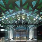 Barkow Leibinger submitted a portfolio of several cutting/casting projects, including a complex façade of 3D and 2D polygonal, mirrored glass panels for an office building in Seoul, Korea, and a restaurant ceiling infilled with glulam wood cells. But it was the gatehouse and its roof that wowed the jury. “That extruded cut and [fold] actually became a structural roof, and it has a good span,” enthused juror Lauren Crahan. Hodgetts agreed wholeheartedly: “That was a killer—when the thing goes, like, all the way out there … Kabam!”