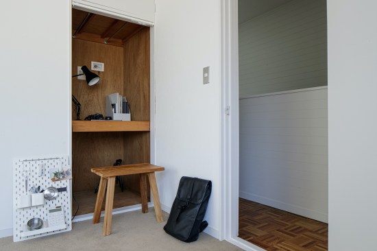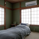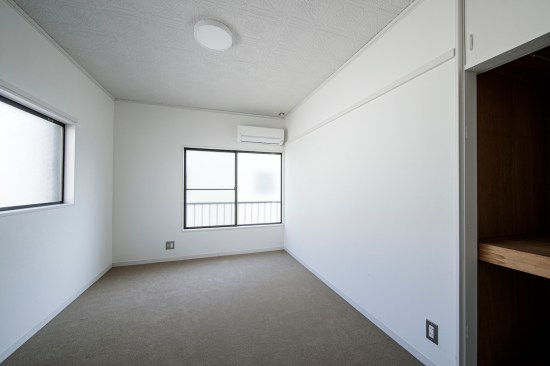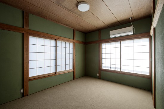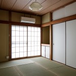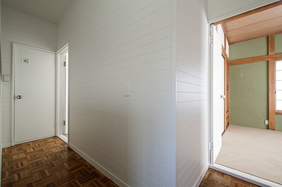In fact, all rooms replaced their outdated flooring for a new one with the same tone. In addition, the hallway removed the cushion layer in favour of the underneath covered woven floor. The juxtaposition of the latest carpet floor with the traditional wooden texture of the exposed structure in the Japanese-style room produces a relaxing contrast between old and dated features.