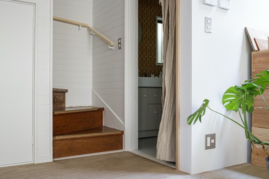 On the west end of the house, the wooden stairs lead to the above level. Here the layout hasn’t changed from before, since the work focused on repairing damaged elements or replacing when needed. Despite being designed roughly 35 years ago, the disposition of the second floor still works nowadays. Three rooms divide the space more or less equally, with a toilet on the north side and the stairways on the west. This gives each space a unique view and plenty of natural light thanks to the large size windows. Almost every element here has been repaired, with the pavements being the only exception.