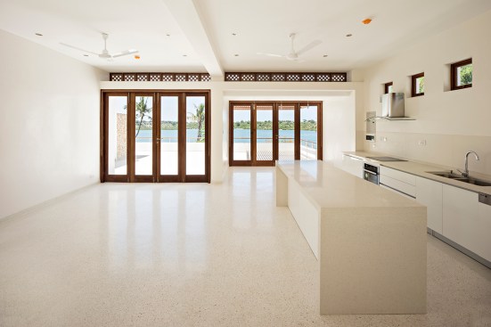 The development was careful to leave the mangroves and other trees intact on site. In addition, natural, passive ventilation was a guiding theme in the project design.