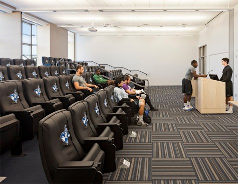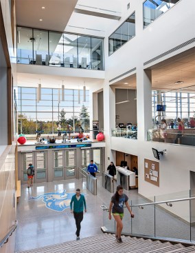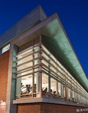 Designed by DiMella Shaffer and Stanmar with the RGO Partnership, the new Sports and Fitness Center not only provides state-of-the-art facilities for its students, it also serves as a new gateway into the Tufts campus along College Avenue. The design challenge of the new building was the site constraints, as this new expansion needed to nestle itself among the three existing buildings with four different floor levels. The new building consolidates the many access points into the current fitness facilities, through one main accessible entry point. The new entrance features a 3-story atrium space, from which visitors can distribute themselves to the adjacent facilities. The glass and pre-patented copper façade breaks from the typical New England Georgian architecture, introducing a unique modern expression that provides Tufts with an iconic building for its Athletic department.