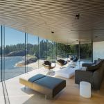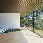 cantilevered floor section looks down over the driftwood-strewn beach,