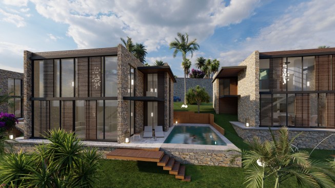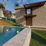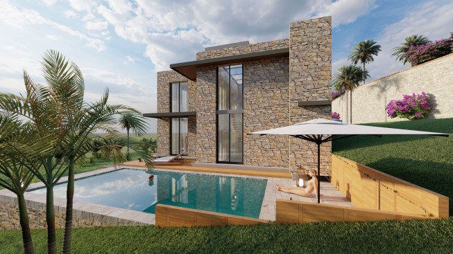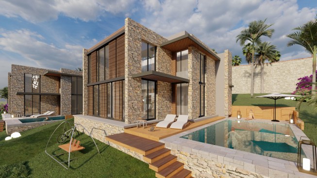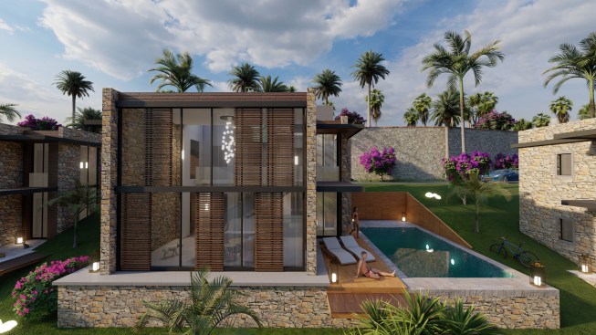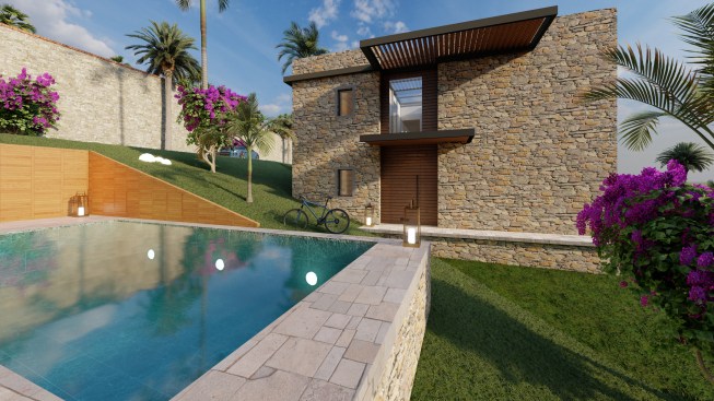 The project locates in Bodrum, Mugla. Due to its hot and sunny weather of Bodrum as a vacation point the house contains huge windows for ventilation.The vista coming from site also can be seen easily with the plan type of the house.