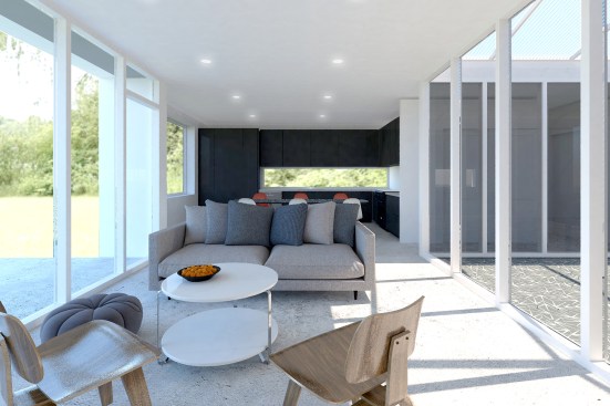 This vacation house next to Turtle Lake, Wisconsin is a getaway for a Chicago family. Inspired by the simple, midcentury bungalow which formerly stood on the site, the house emphasizes simplicity, humility, and good design. The project also prioritizes the natural site, in which conserved wetlands provide both inspiring views and space for recreation.
