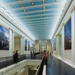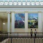 Finishes were used where they have the greatest significance and can be appreciated, Lasher explains. The GSA’s Art in Architecture program allowed a budget of almost $250,000 for site-specific art—which led to the narrative painting cycle that fills the east and west sides of the second-floor atrium. Judge Scott Coogler worked as a member of the GSA-appointed arts council to help develop the criteria for the paintings. “We wanted to include the history of the area, the courts, and the country,” he says. The architects and the judge originally thought that the budget might only sustain smaller pieces, but artist Caleb O’Connor chose to fill the panels between the pilasters, resulting in 16 works of about 9 by 13 feet apiece.