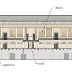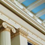 “There were certain expectations that the building would have a clear and unequivocal relationship to classical architecture,” says Aric Lasher, AIA, director of design at HBRA. The specific model for the detailing of the building’s portico, is the Greek Temple of Zeus at Nemea. “Karl Friedrich Schinkel, Peter Behrens, and Mies van der Rohe all admired it,” Lasher says—naming three architects who practiced in highly varied modes of aesthetic production during the 19th and 20th centuries. That temple includes the three primary orders, two of which are used by HBRA for the Tuscaloosa courthouse. The Doric is deployed in the center-bay entrance portico while the Ionic is used in pilaster form in the wings. The columns on the interior are modeled after an Ionic order used at the Erechtheion in Athens.