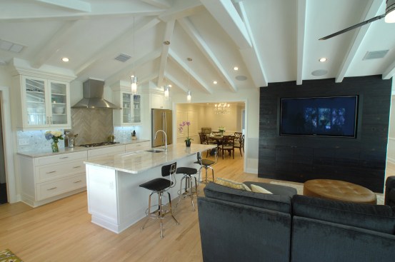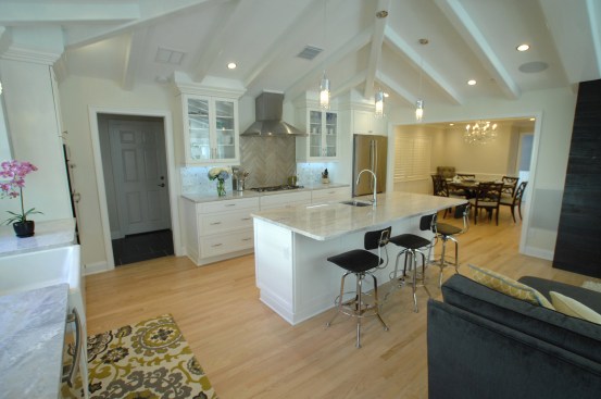 The purpose of this project was to modernize a dark 60’s era home. The objectives included improving the functionality of the kitchen by enlarging it and creating a great room, improving the aesthetic of the kitchen by bringing in natural light and updated finishes, and updating the dining room. The clients wanted a bright open plan space that would allow for easy entertaining and comfortable day to day living.