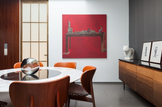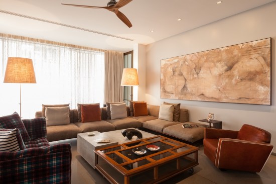 The challenge of designing twin houses in the proximity of a bustling highway translated into a program where a stark contemporary architectural language created the ideal shell for an interior, richly layered with handcrafted materials, bespoke furniture and curated elements.